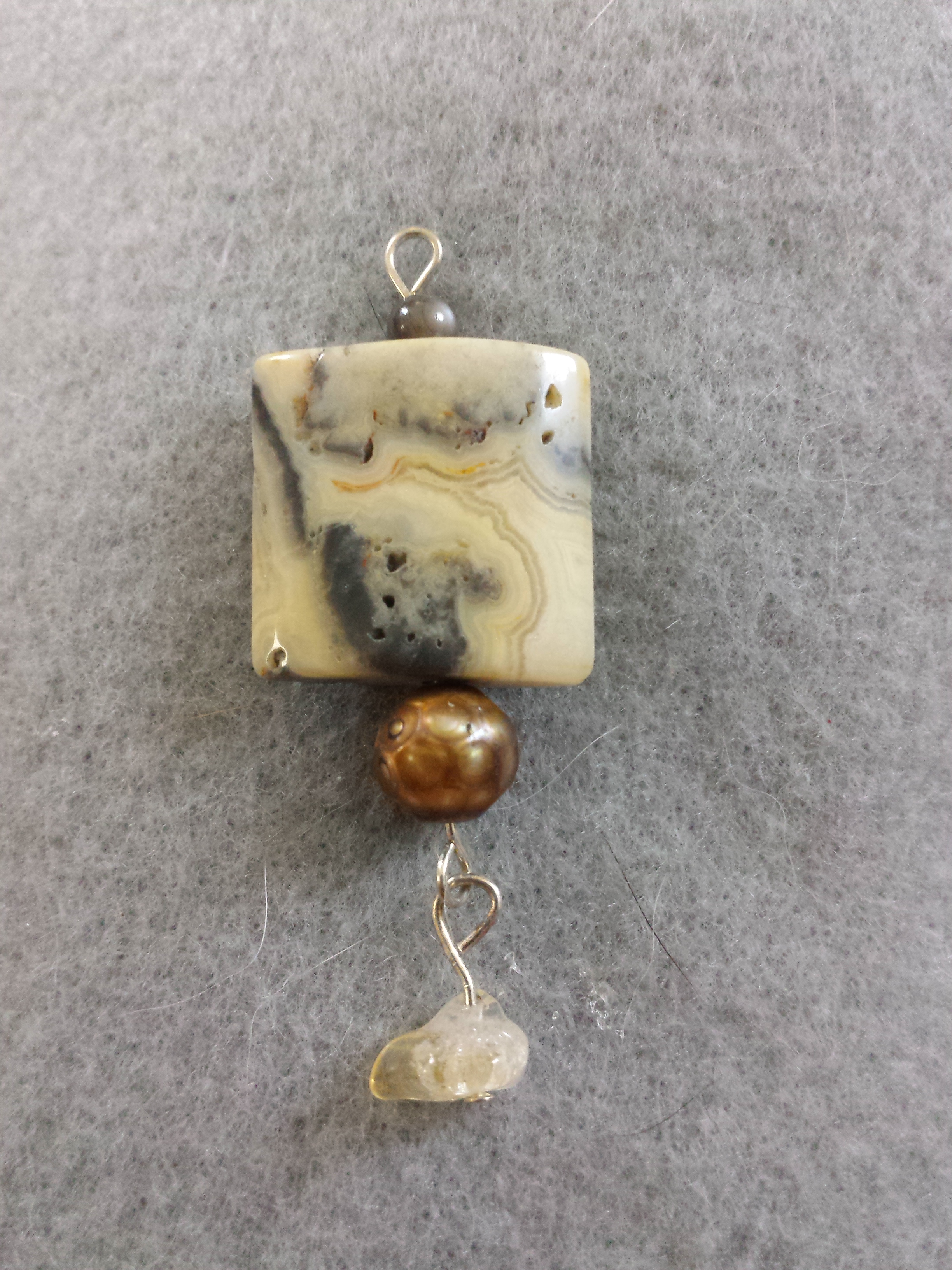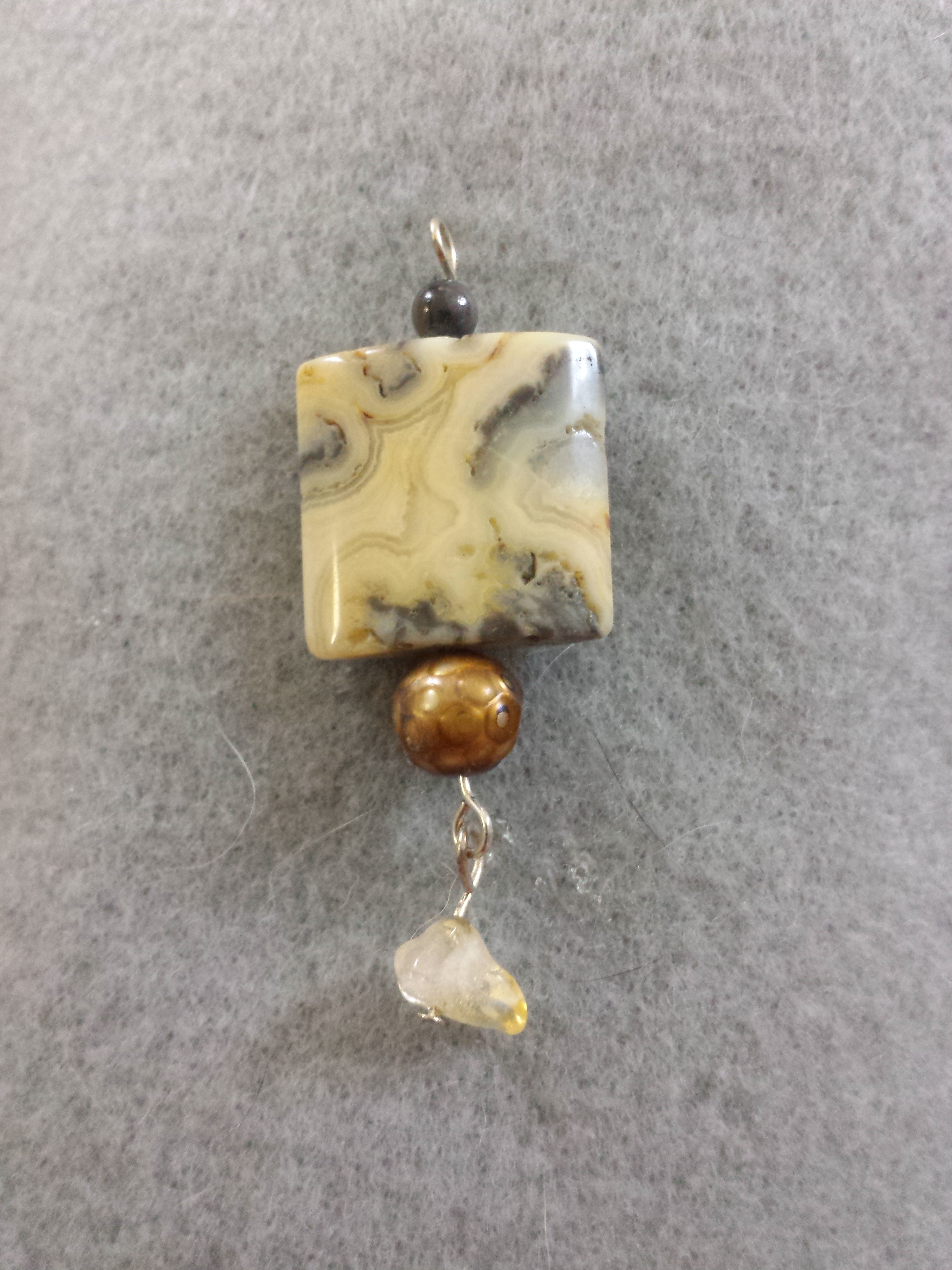 Creamy jasper pendant with copper pearl detail and quartz dangle at bottom.