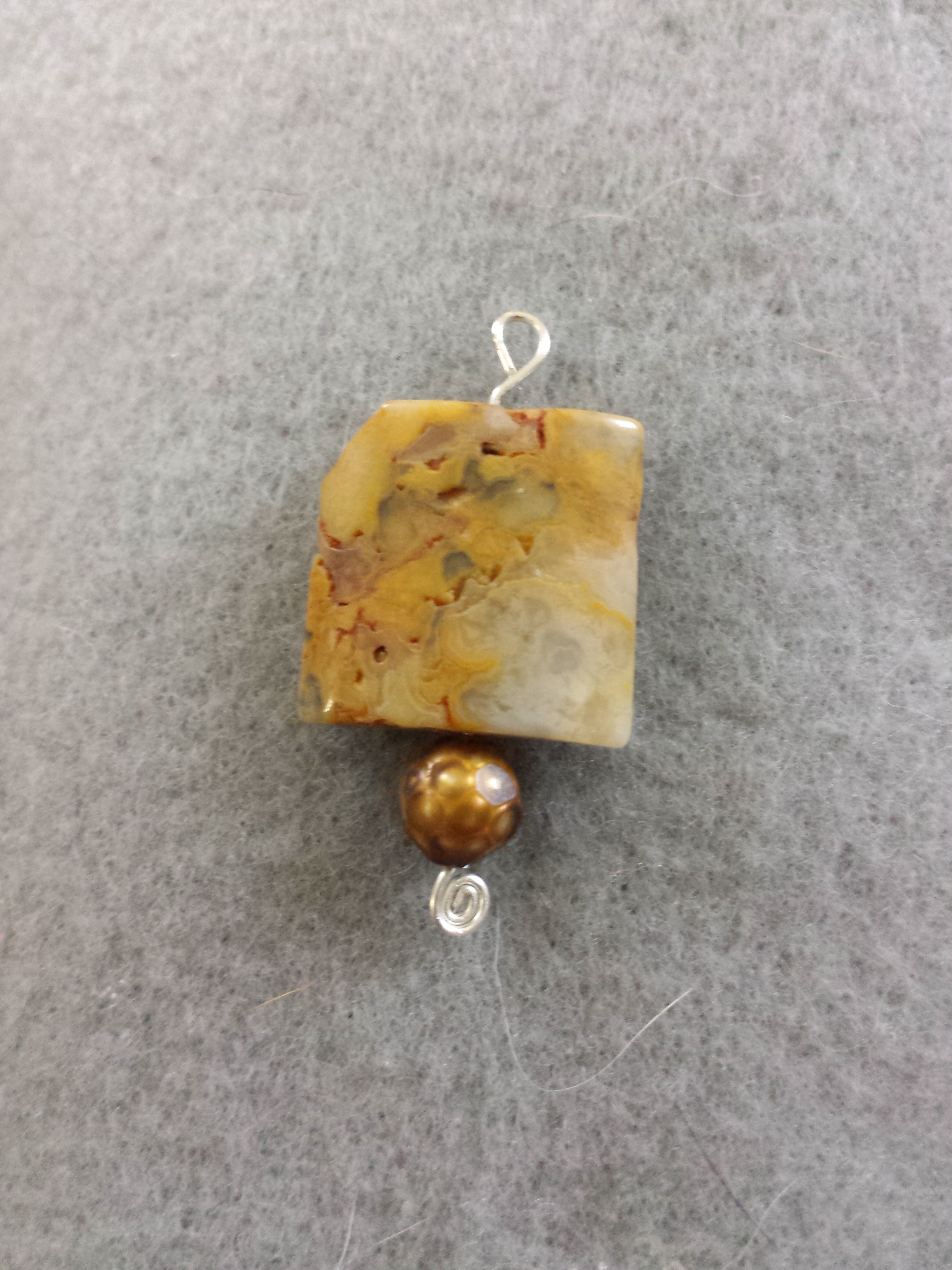 Jasper pendant with copper pearl detail and spiral at bottom.