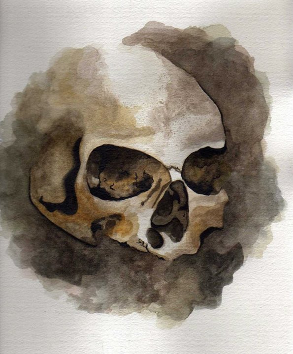 Watercolor painted skull inspired from personal photograph taken in Paris inside the catacombs. Printed on 8.5x11" paper with backing, and wrapped in protective sleeve. Each print is signed and dated.