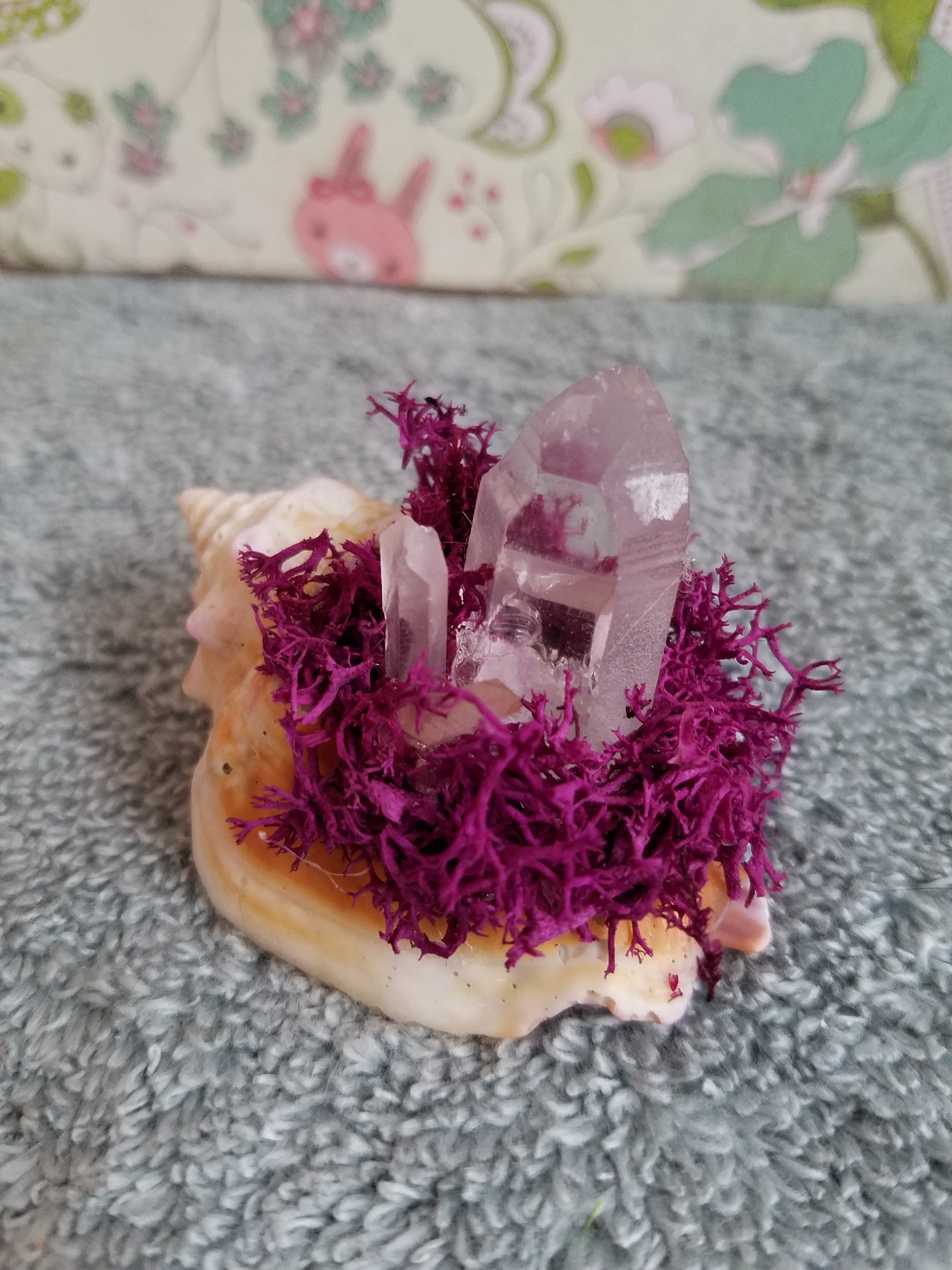 This altar contains quartz for healing and meditation. There are also an assortment of shells, collected from Florida's Shell Island.